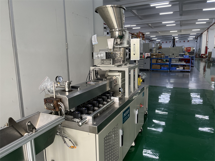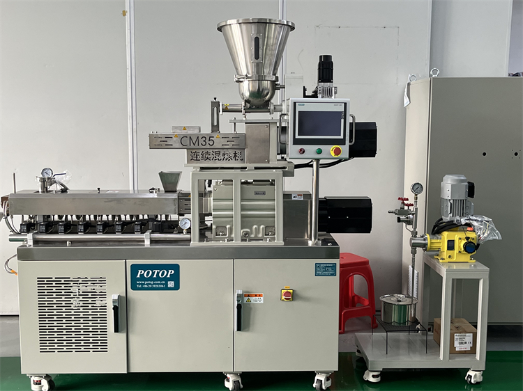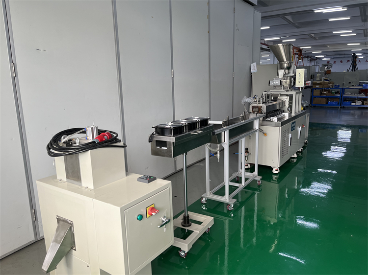 广州普同定制新款双螺杆挤出造粒机增配双转子密炼机和体积式双螺杆喂料机,适用于EVA、PE+CaCo3共混增强改性