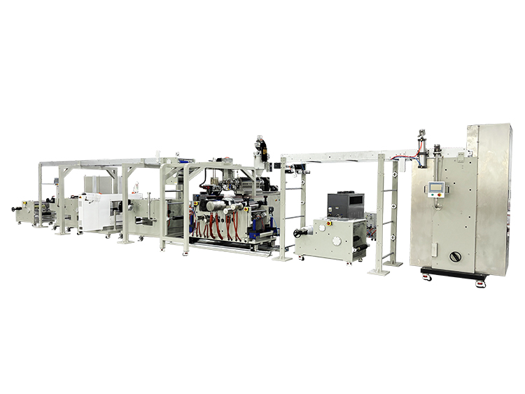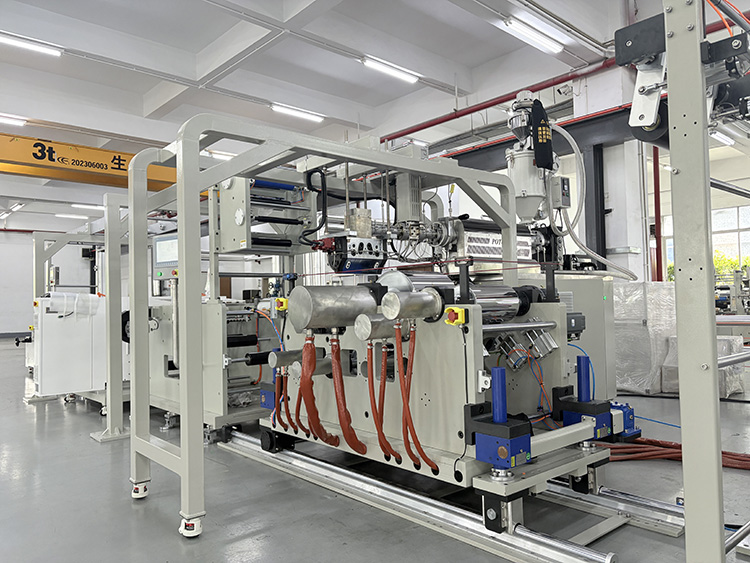 3.流延成型:经过计量后的熔体被送入专用模头,通过模头的精确设计,熔体被均匀涂覆在连续传送的基材(如纸张、薄膜等)上。这一过程中,熔体在模头与基材之间形成一层均匀的薄膜。