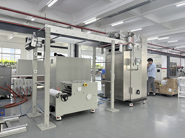 5.收放卷与检测:复合后的材料经过冷却后,由收放卷系统进行收卷和放卷操作。同时,测厚仪对复合材料的厚度进行实时监测,确保产品质量的稳定性。瑕疵检测系统则用于检测复合材料表面的瑕疵和缺陷,及时发现问题并进行处理。